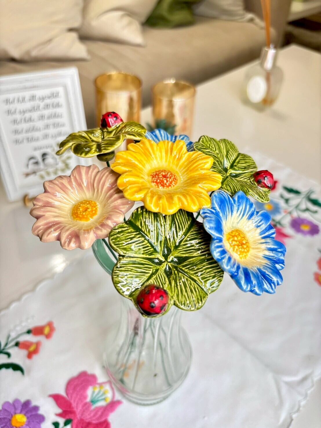 四つ葉のクローバーは「幸運の象徴」、そしててんとう虫はヨーロッパでは「幸せを運ぶ小さな妖精」ともいわれています。見ているだけで「いいことがありそう」と思わせてくれる、あなたの暮らしにそっと寄り添う存在です。