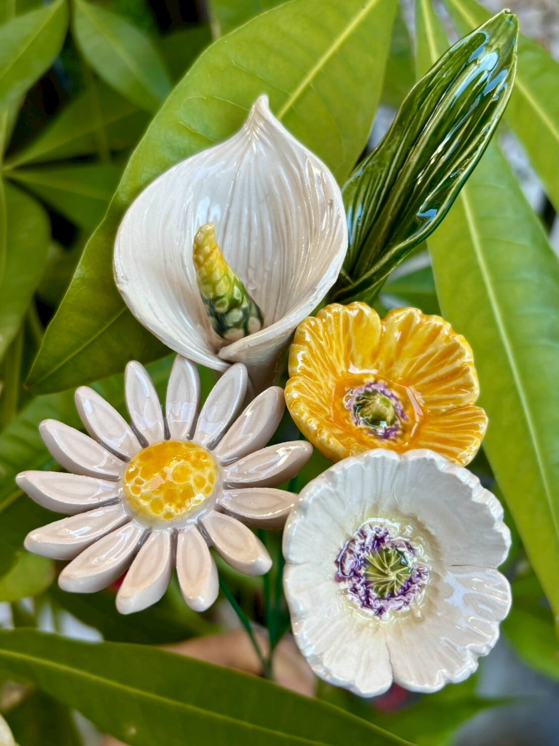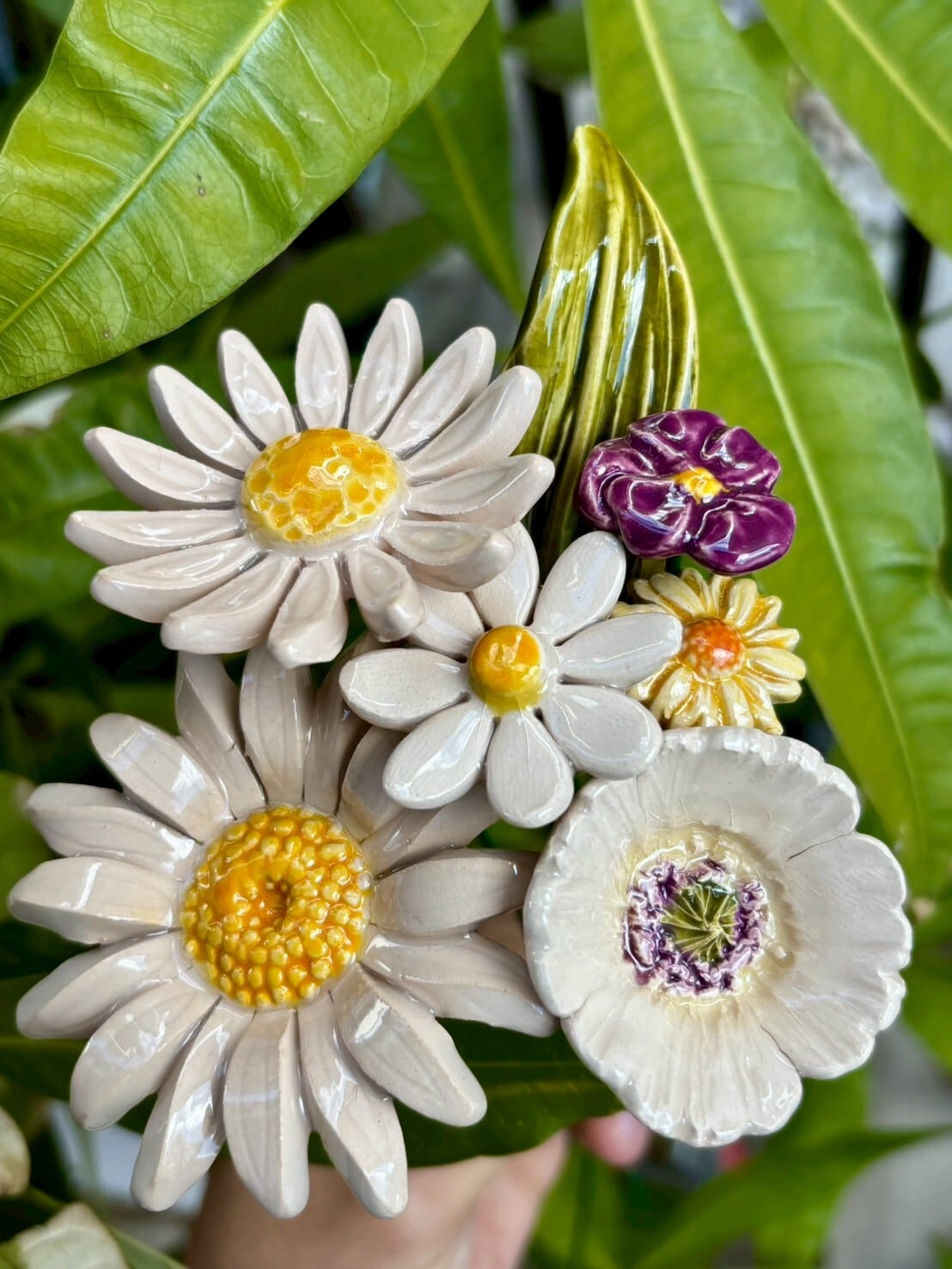 デイジーは、14枚の繊細な花びらと、低くなった中央部が魅力的な商品です。この花の人気は、どんなグリーンにもマッチし、他の花とも調和しますが、一輪挿しでも生えます。ブーケにしたり、植物のそばに置いたり、庭に置いたり、花瓶に活けたりしても美しいです。 サイズ ヘッドの直径:52-55mm ワイヤーシャンク 26cm 成形後、生花を乾燥させ、高温で2回焼くため、屋外での設置に適しています。私たちの作業工程を通じて、私たちの陶器は色彩保存剤、日光や凍結に強いので、長い間耐久性が持続します。一つ一つ手作業で生産しているため、形や色、大きさに違いがある場合があります。