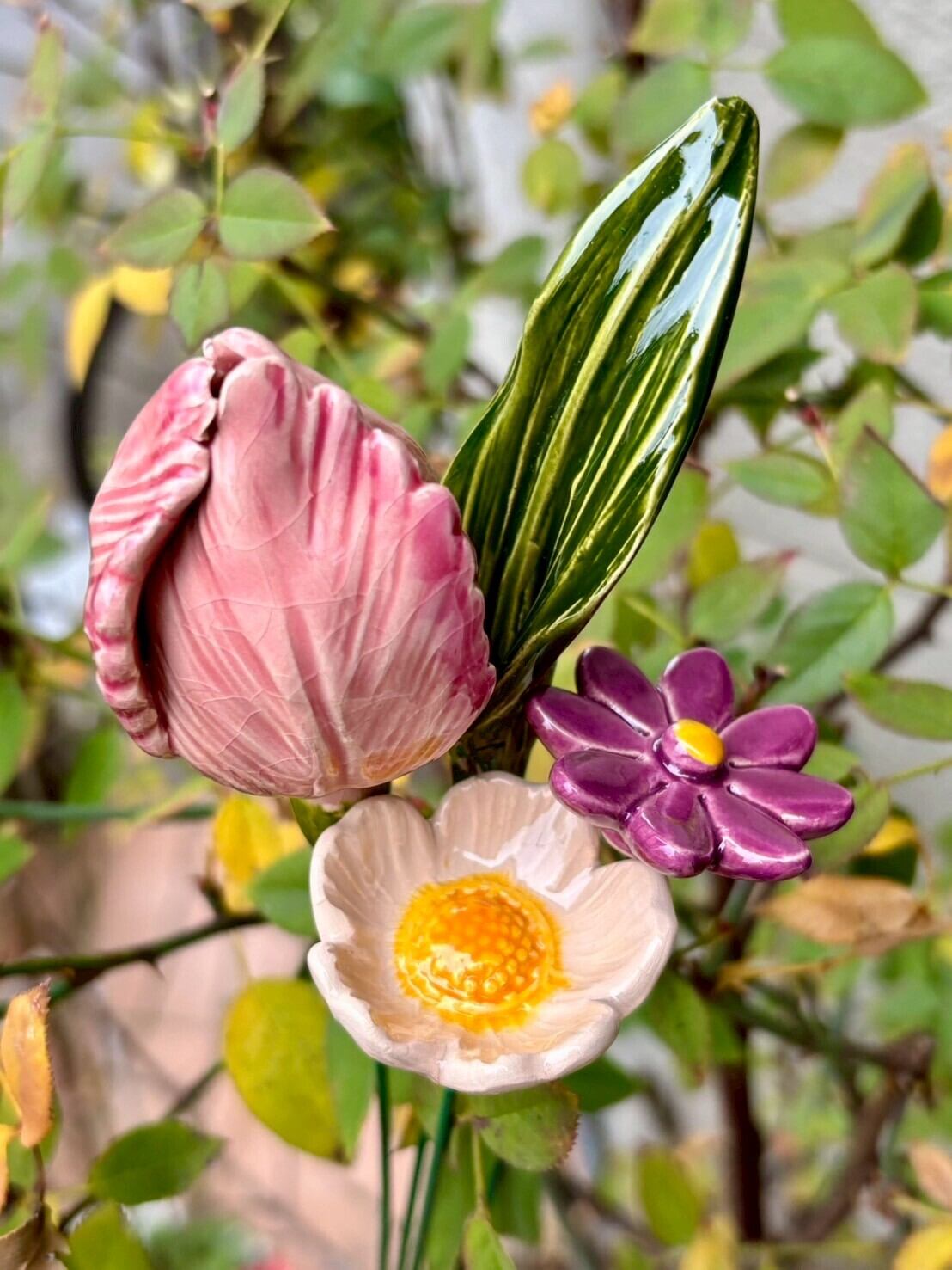 優雅な佇まいと素朴な温かみを兼ね備えた、ワイルドローズの陶器の花が仲間入りしました。繊細に広がる花びらと、中心の立体的な質感が特徴で、ひとつひとつ丁寧に手作業で仕上げられています。 柔らかな色合いが空間に自然に溶け込み、単品でも、ほかの花々と組み合わせても美しく調和します。ナチュラルなインテリアや、季節を問わず楽しめるアレンジにおすすめです。 ※すべてハンドメイドのため、色や形にわずかな個体差があります。